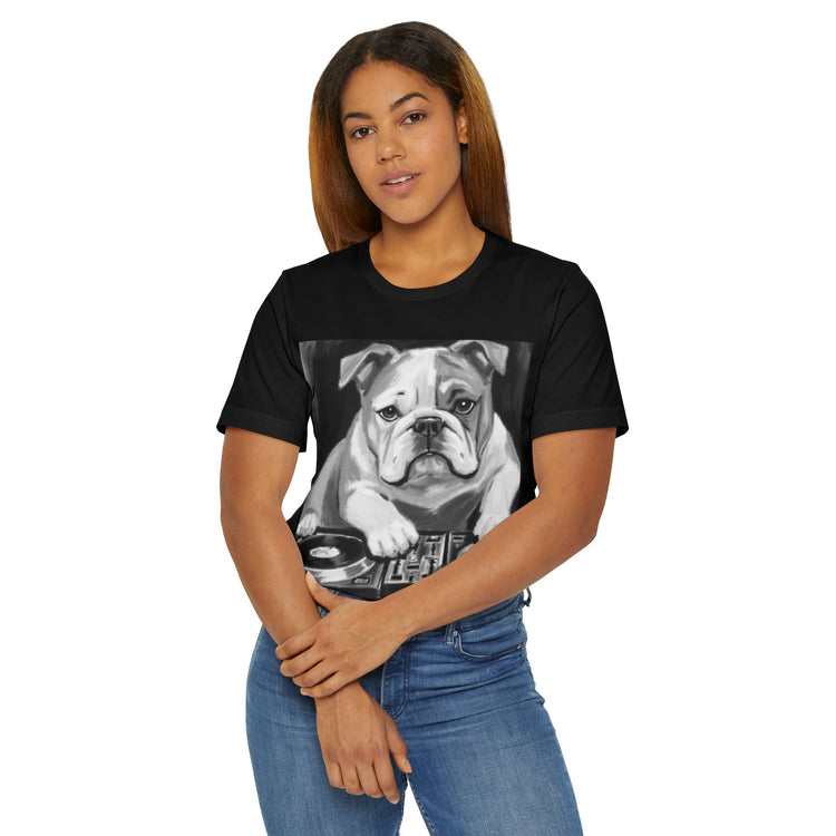 Introducing a stylish Unisex Jersey T-Shirt that effortlessly combines comfort and unique style. This lightweight tee features a fun graphic design that captures attention, making it perfect for both casual outings and relaxed home wear. Its breathable fabric ensures all-day comfort, while the crew neckline adds a classic touch. Suitable for all ages, this T-shirt is ideal for dog lovers, music enthusiasts, or anyone who enjoys expressing their personality through fashion. Perfect for gifting during holidays, birthdays, or just to brighten someone's day! Wear it at summer parties, casual gatherings, or simply while lounging around, and let your personality shine!